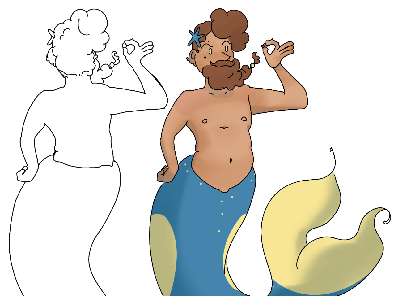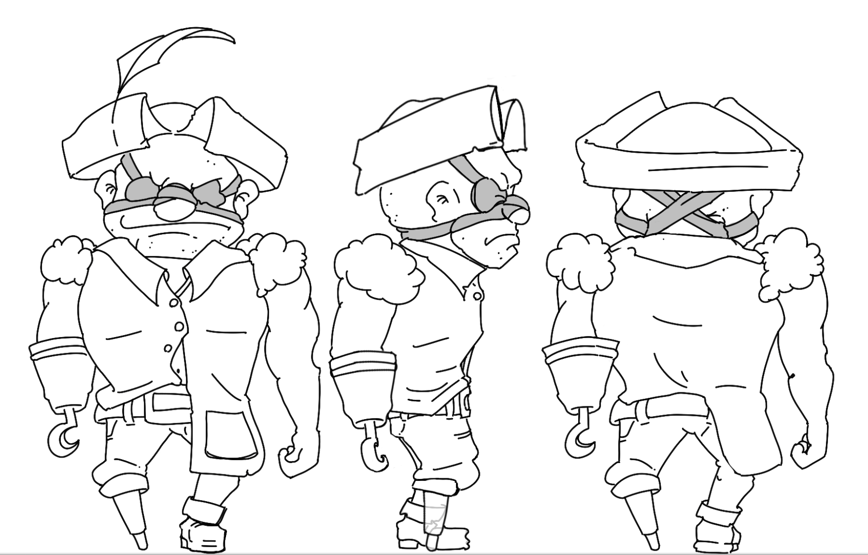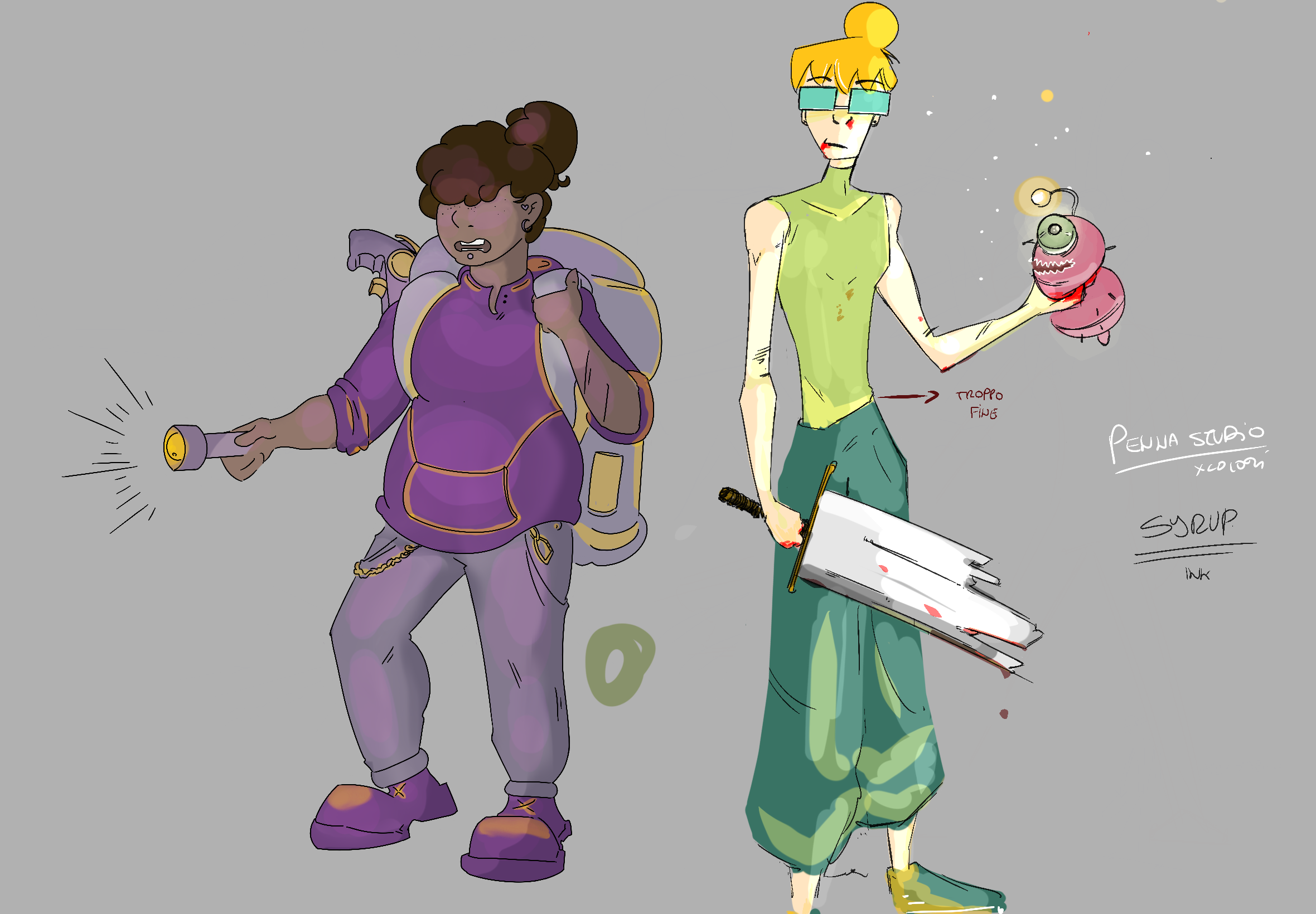 Character designs of the protagonists of my school assignment. A pirate-themed retelling of the myth of Polyphemus and Ulysses: the first a doubly blinded pirate, and the second one a curious mermaid.