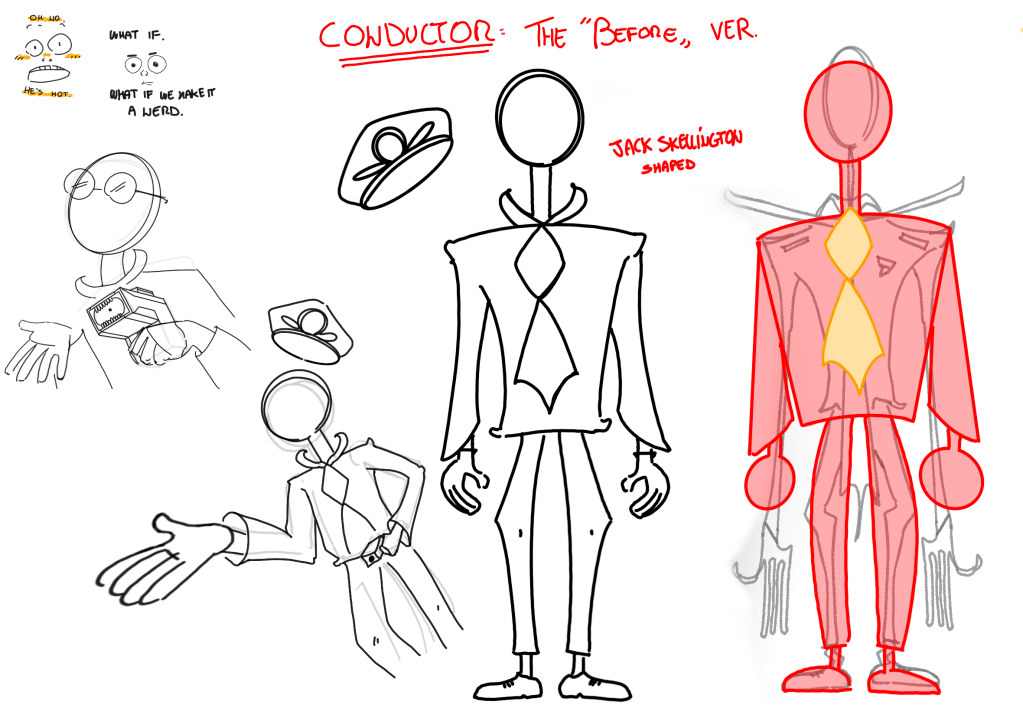 Visual development (from the final design to the first) for the Controller, the monster from The Next Stop, my own thesis short film